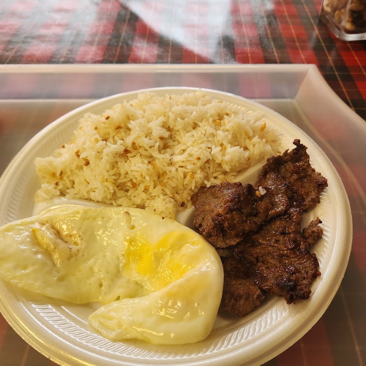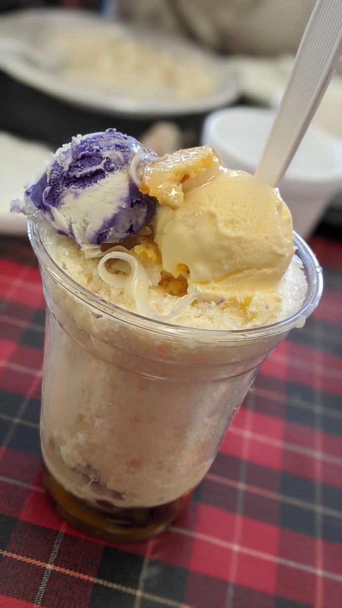 First time visit but will be back! Came close to closing so there were only a few choices but we got the marinated beef and rice box, half order of lumpia, a piece of tropical mango cake and a halo halo! The food was great, and the lady was so sweet!